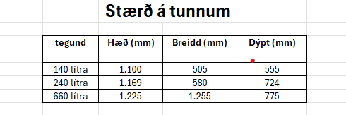 Hver er stærðin á ílátunum ?